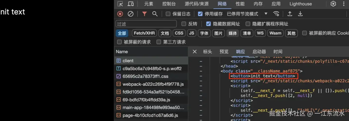 你会发现 init text其实是来自于 useState 中的值,但是却依然输出在 HTML 中。
