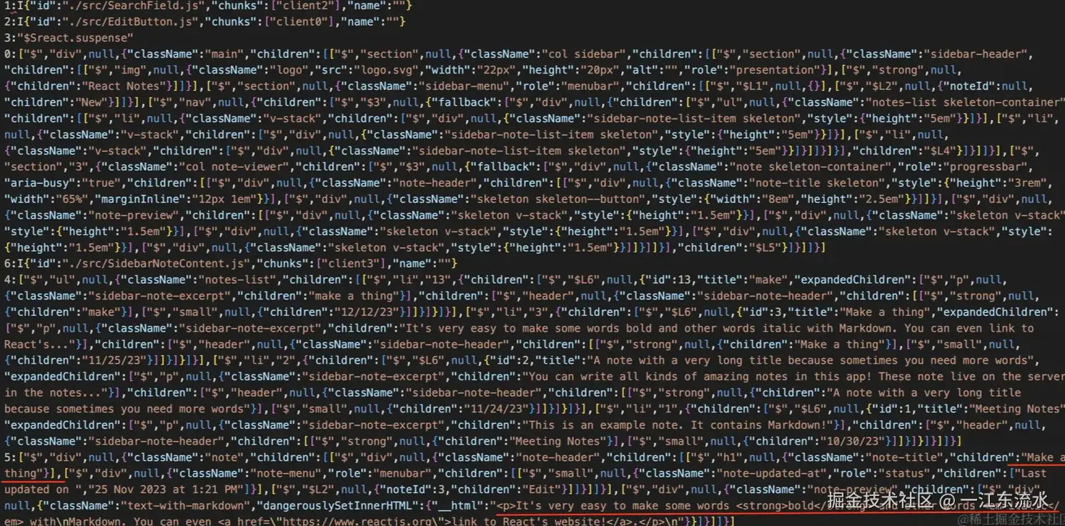 - React 将服务端组件渲染成一个特殊的数据格式称为 React Server Component Payload (RSC Payload);