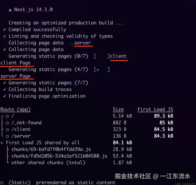 而且根据输出的结果,无论是 /client还是 /server走的都是静态渲染。