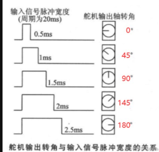 脉冲宽度:0.5ms - 2.5ms,对应角度0° - 180°。