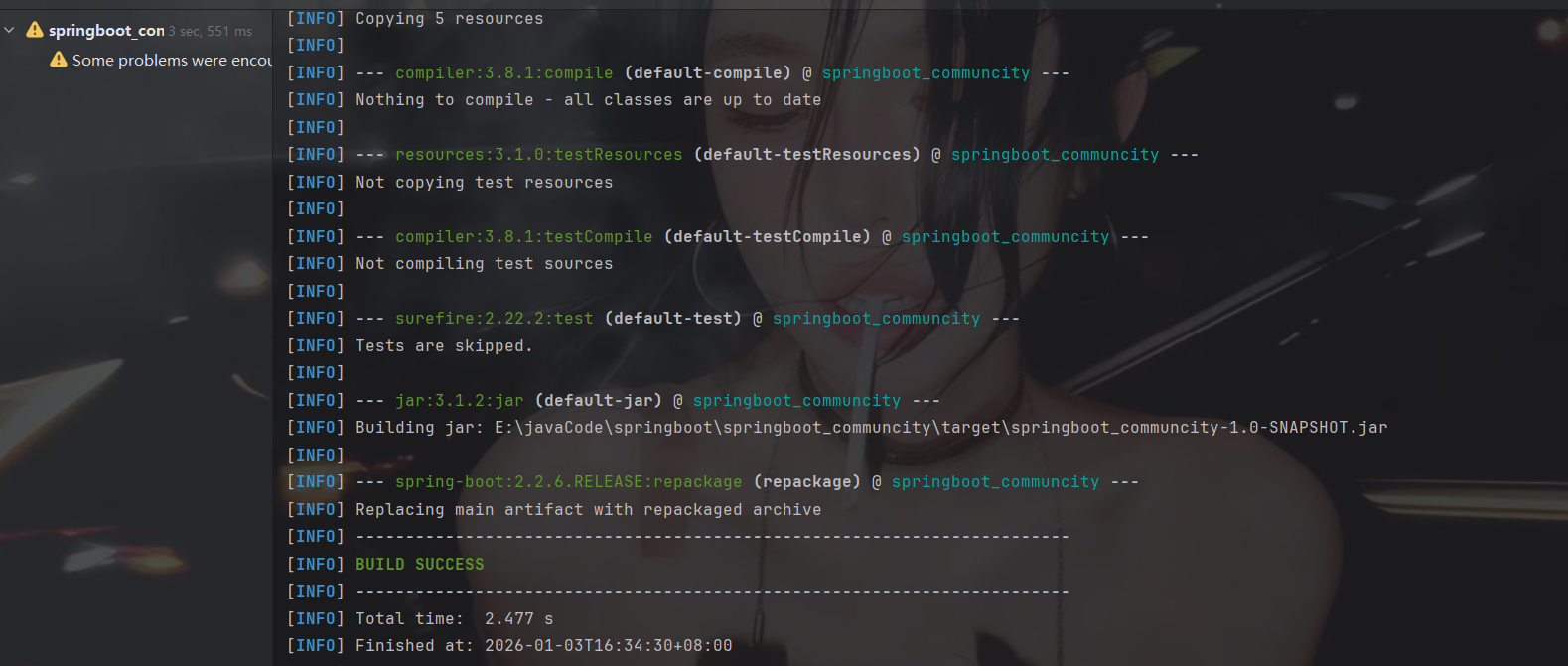这里打包的时候主要看一眼 pom.xml文件里面是否是把配置文件也打包了 老版的idea需要自己进行配置