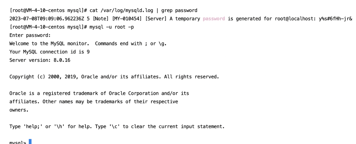 查看初始密码并登录mysql