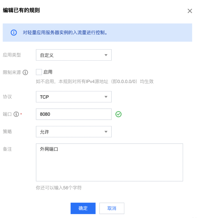 首先,防火墙设置个可以访问的端口,比如就8080吧,跟我们之前本地的端口号一致:
