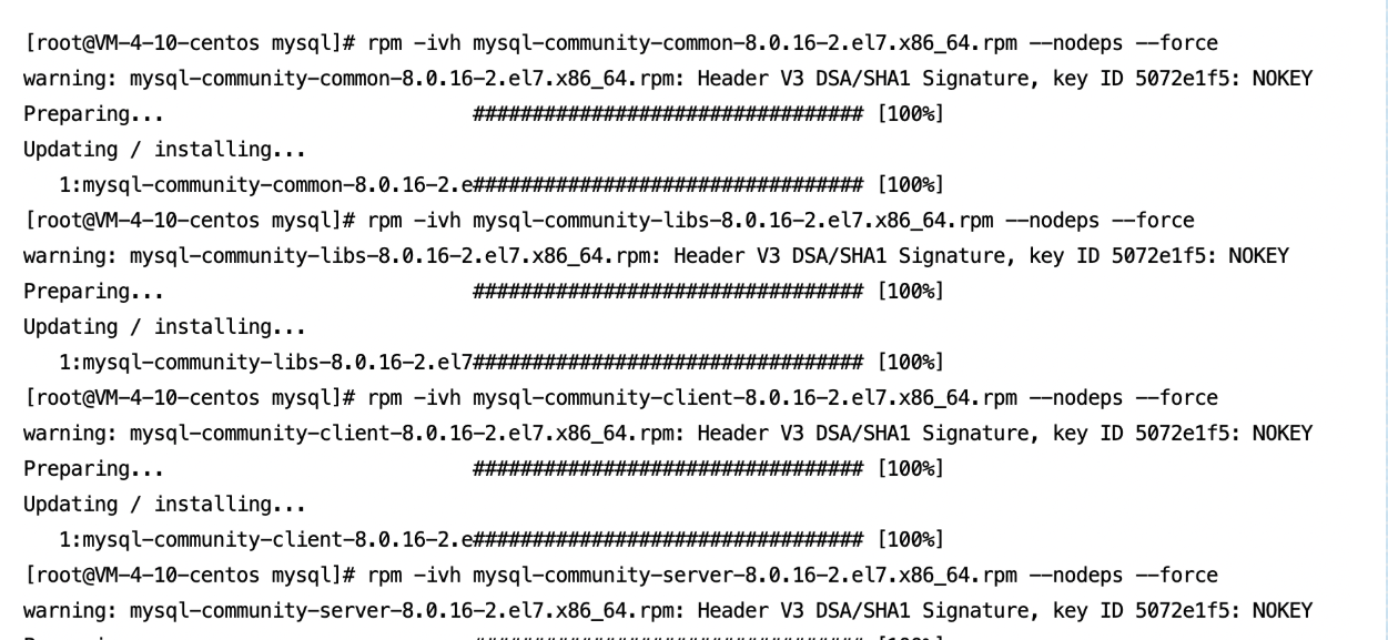 rpm -ivh mysql-community-libs-8.0.16-2.el7.x86_64.rpm --nodeps --force
