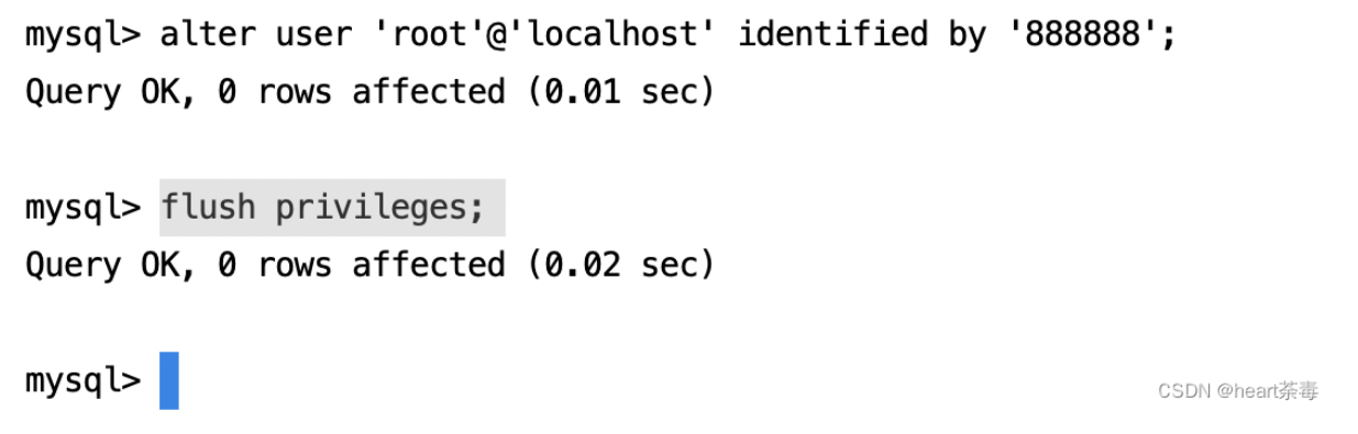 alter user 'root'@'localhost' identified with mysql_native_password by '888888';