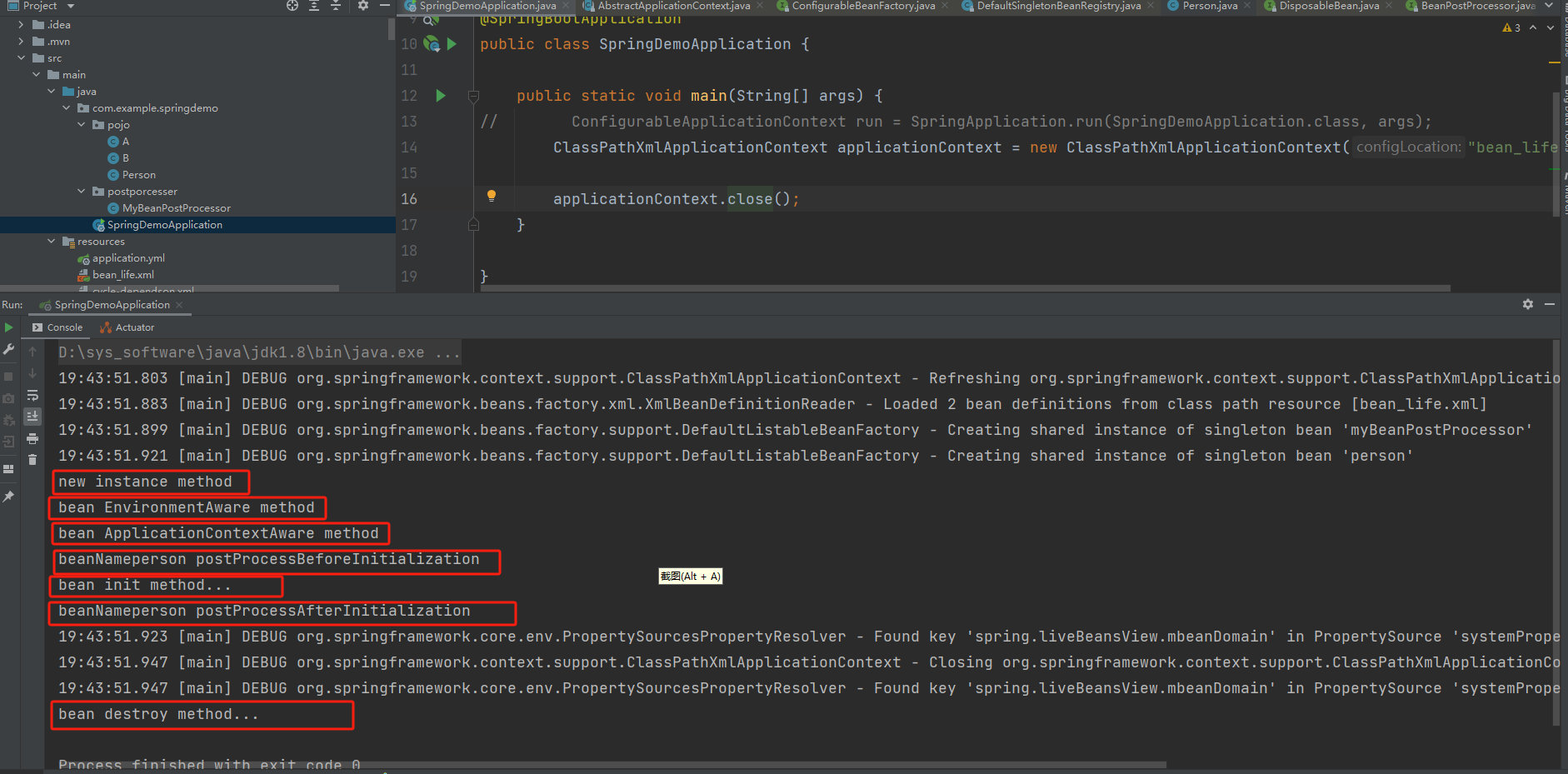 可以看到 如果我们实现了DisposableBean接口后会执行DisposableBean.destroy()