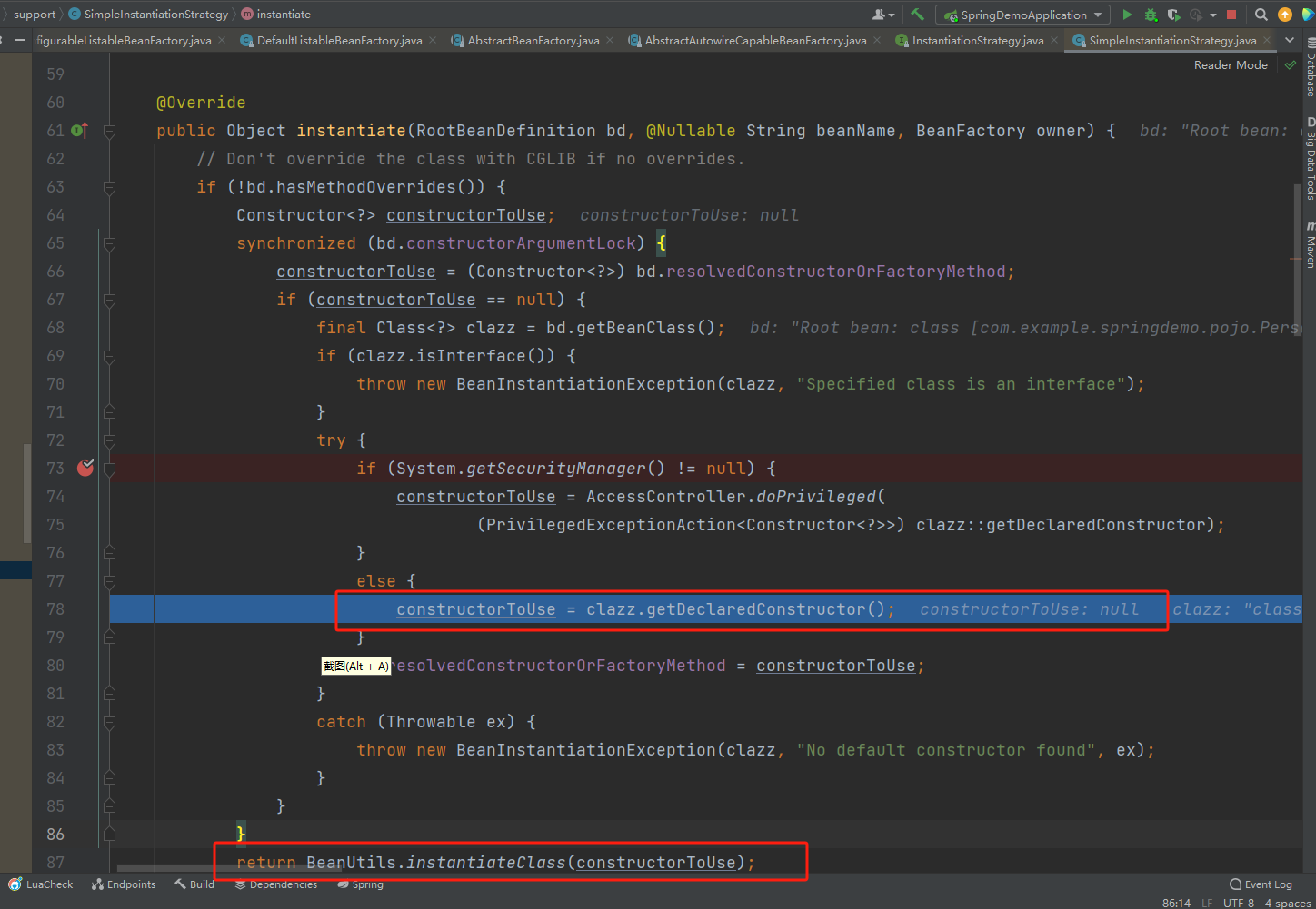 看到上图可知,实例化对象其实最终是通过反射来实现的。