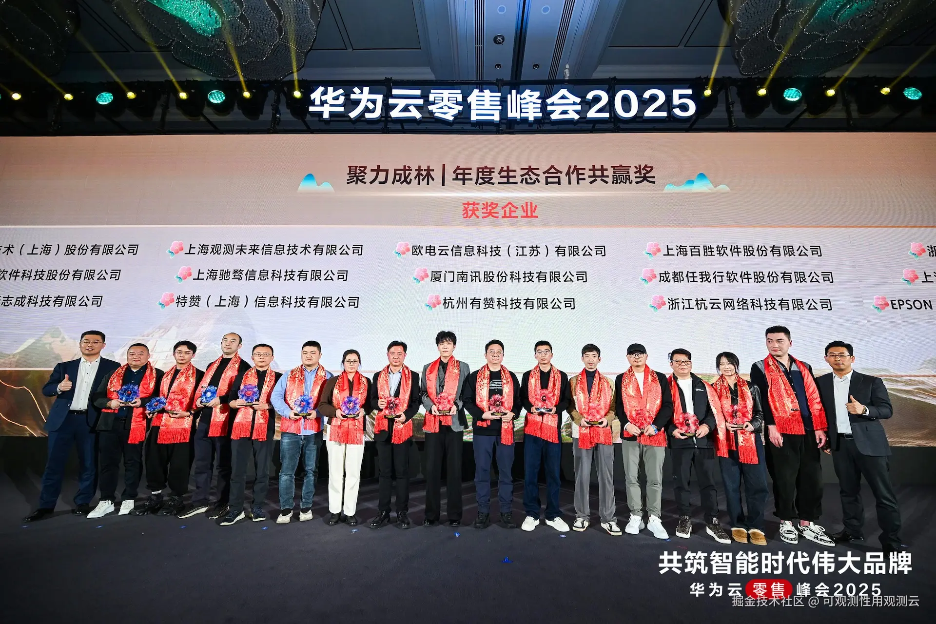 峰会期间,华为云正式揭晓了"聚力成林 | 年度生态合作共赢奖"。观测云凭借在 AI 时代云原生可观测性领域的创新势能,以及在零售等复杂场景下的深度耕耘,从众多伙伴中脱颖而出,荣获该项殊荣。