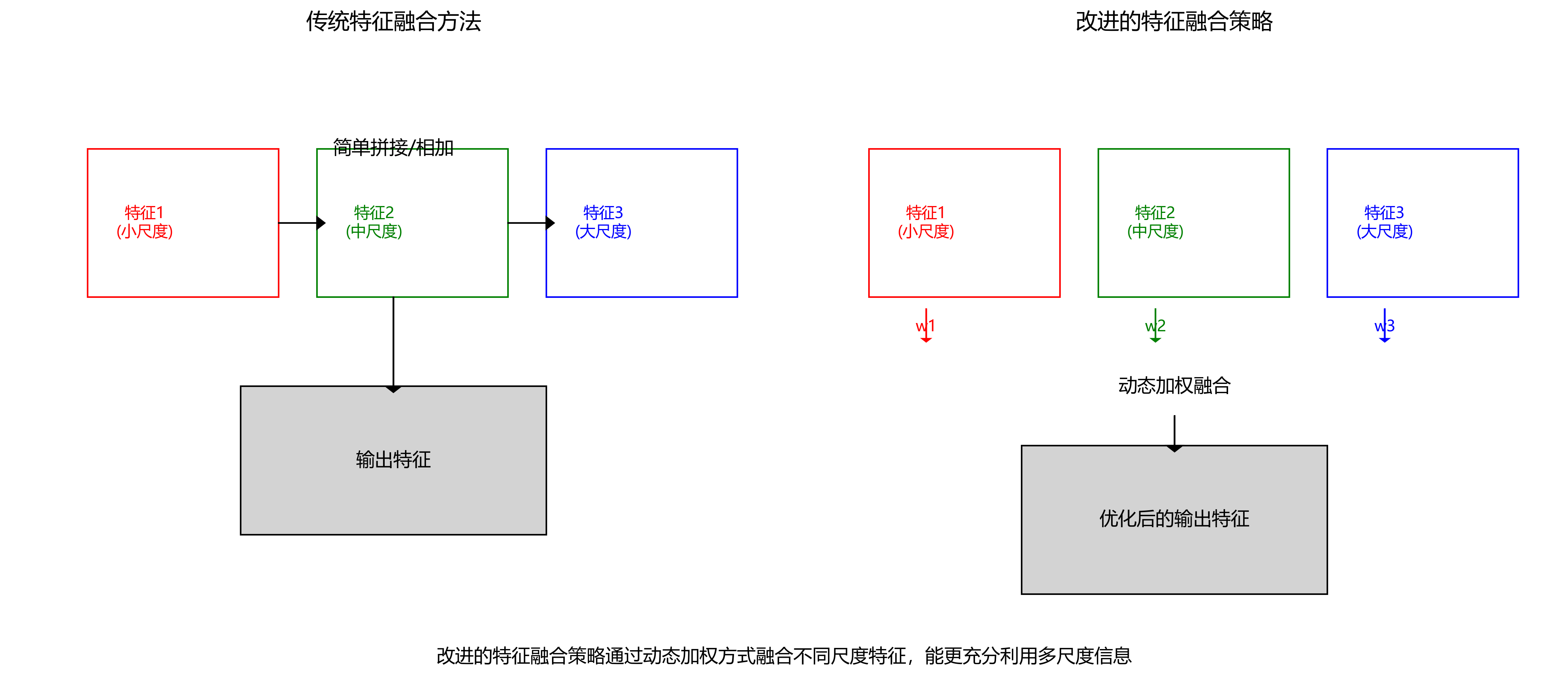 传统特征融合方法往往简单地拼接或相加不同尺度的特征,这种方式难以充分利用多尺度信息。针对仪表盘数字识别任务,我们提出了一种改进的特征融合策略,通过动态加权的方式融合不同尺度的特征。