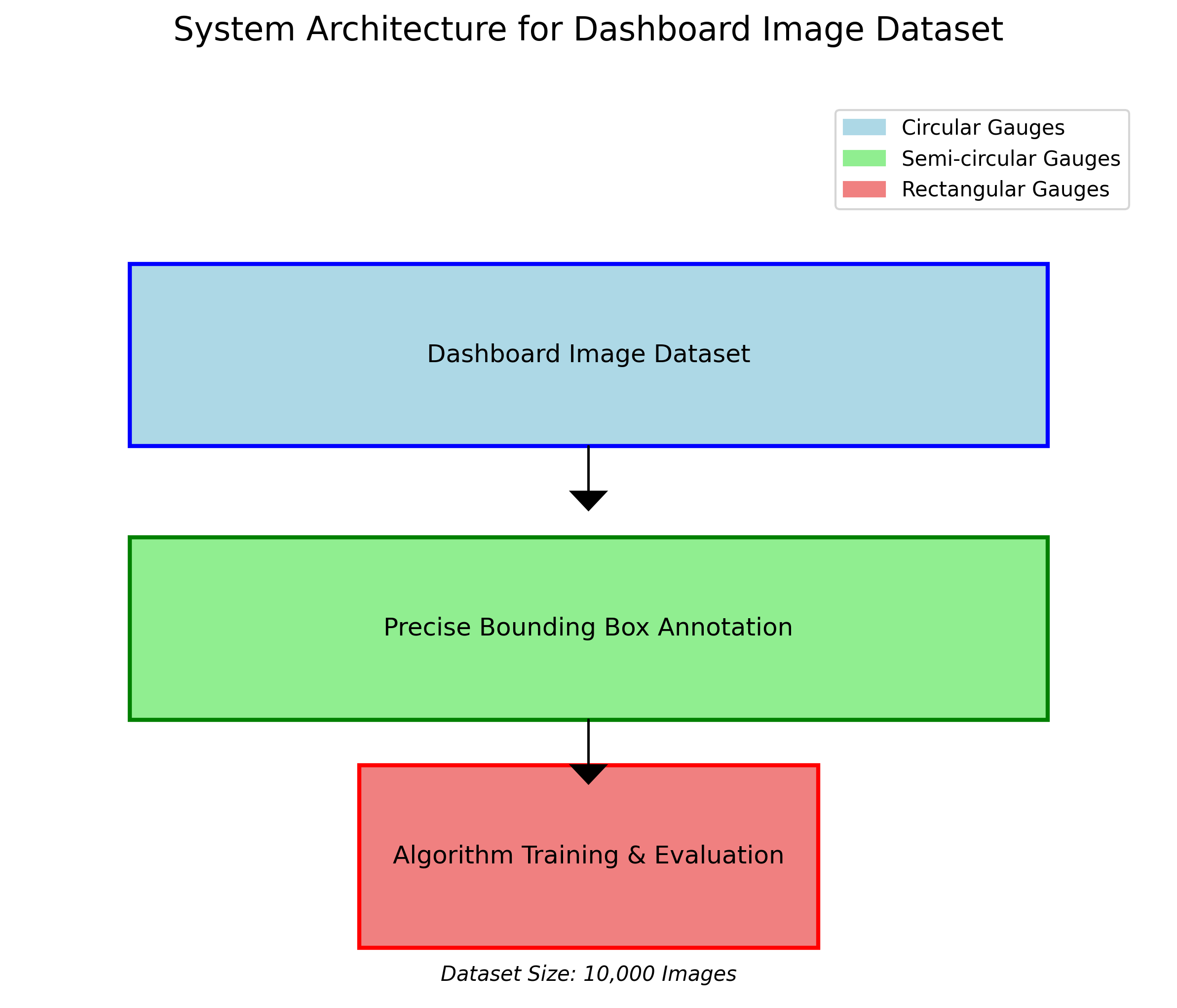 为了训练和评估我们的算法,我们构建了一个包含10,000张仪表盘图像的数据集。这些图像涵盖了不同类型的仪表盘,包括圆形、半圆形和矩形仪表,以及不同量程和精度的仪表。每张图像中的数字都进行了精确的边界框标注,确保训练数据的准确性。