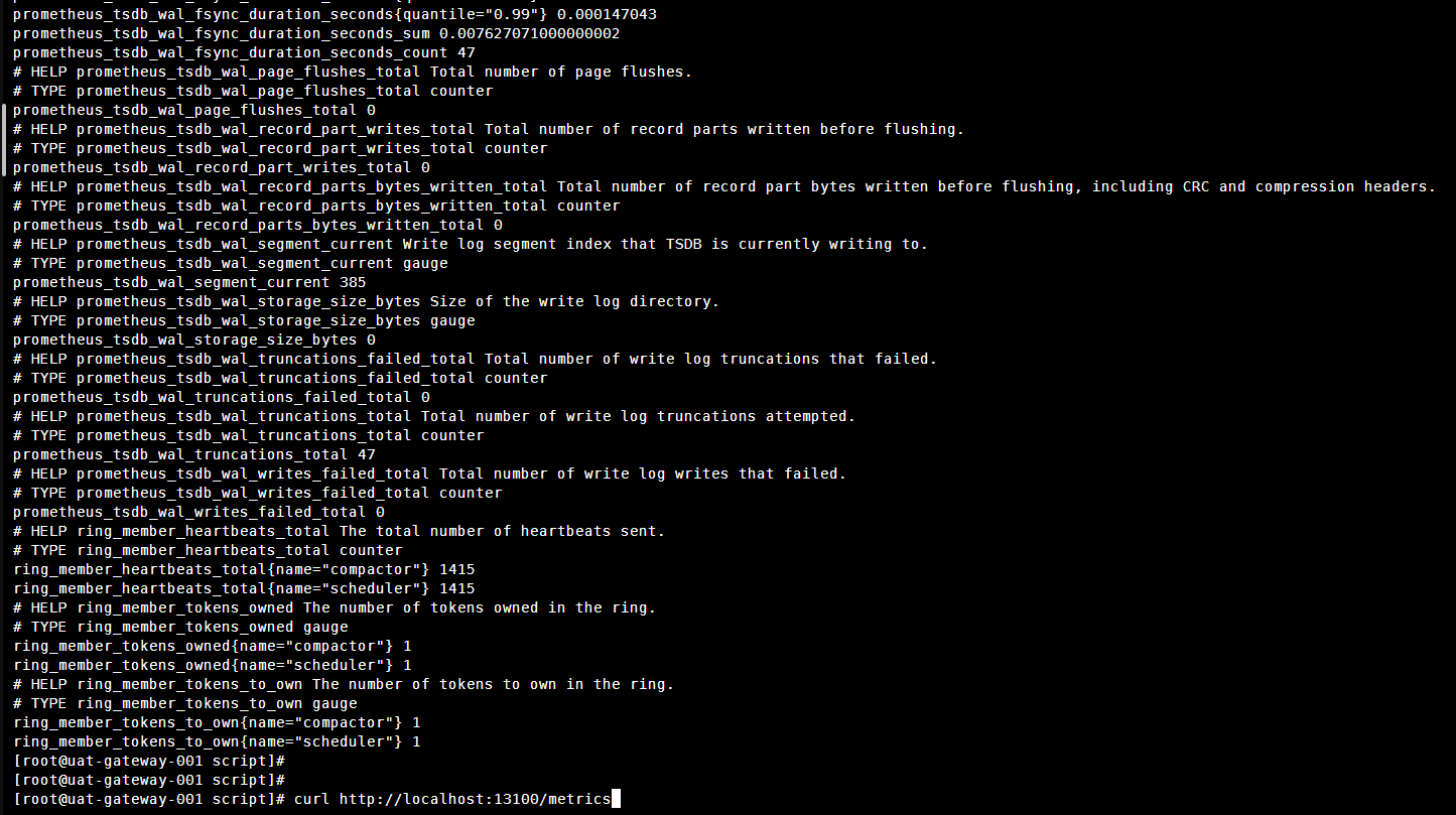 如下指标信息内容太多,执行请求为下面的 curl http://localhost:13100/metrics