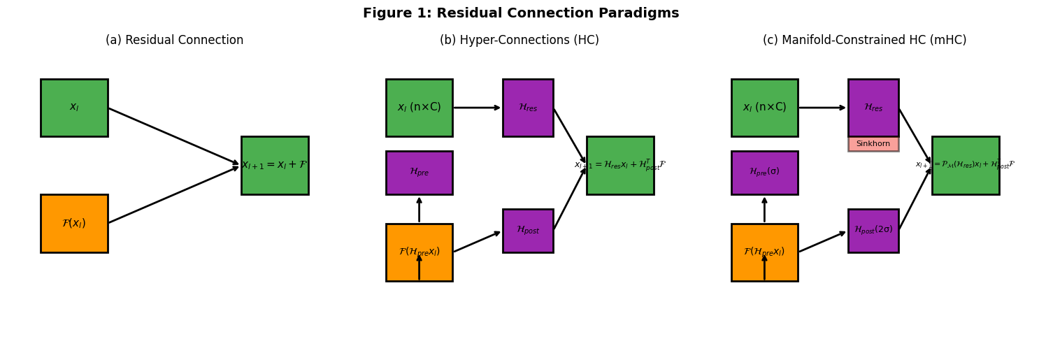图1已保存至:mhc_figures/figure1_residual_paradigms.png