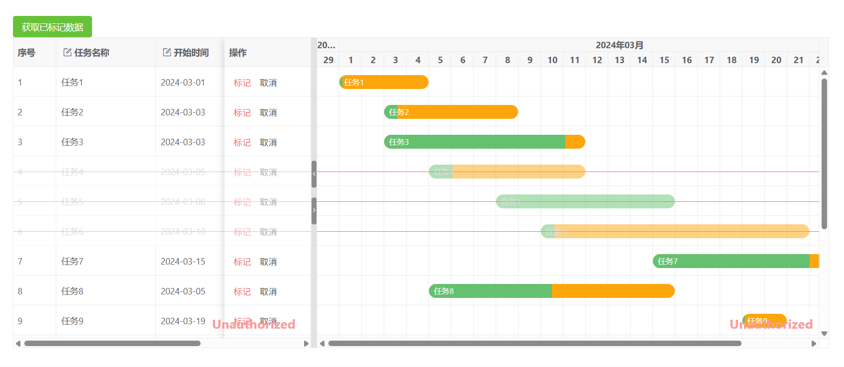 vue 甘特图 vxe-gantt 如何实现标记删除数据,显示标记删除后行效果,获取已标记的行数据