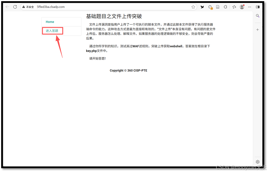 点击进入答题,如下所示进入了文件上传的真实页面,具体如下所示。