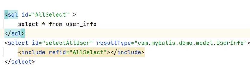 当使用重复且被sql标签记录的,就可以使用include去接收,常用于字段起别名那一块