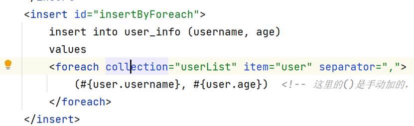 Collection会绑定你传输进来的集合类型,item是你遍历数据时,里面每个叫啥,separate表示的是中间的分割符是啥,open表示开始的标记是什么,close表示的是关闭的标记是啥