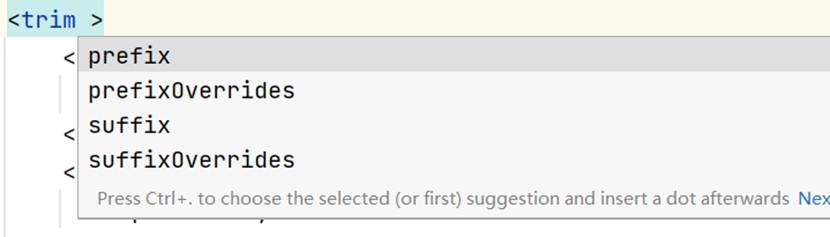 prefixoverrides表示在整个语句块之前删去东西