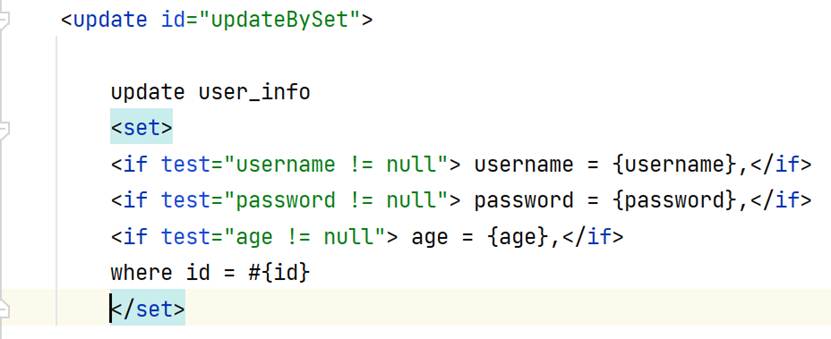使用set标签,会自动把内部的逗号去掉,就不会出现之前的SQL报错的问题