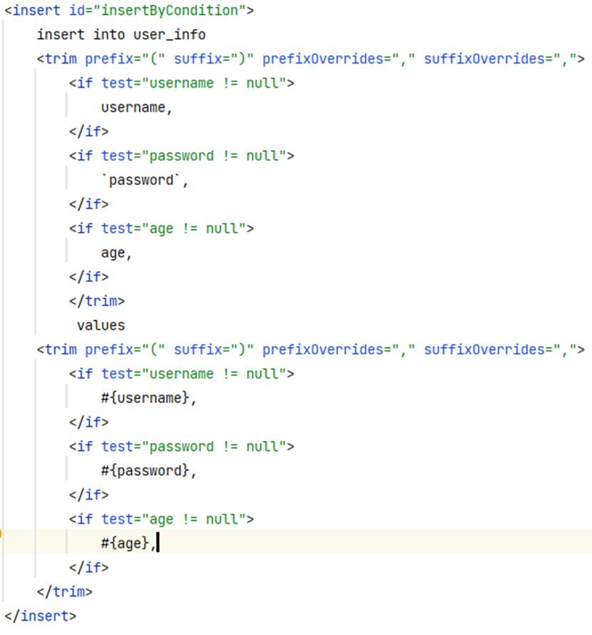 这里的username,age,phone都是可选的传参,如果这个时候前端只传输了一个数据,那么其他的这个时候都是null,那么这个SQL语句就存在语法错误,就会执行失败。