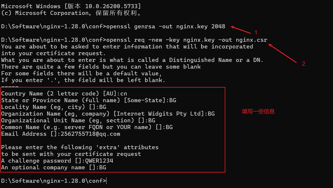 2、nginx.csr:生成签名文件。