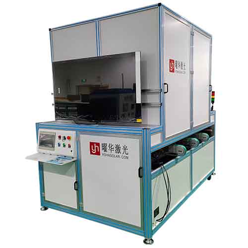 YHEL-S2400型号设备的革新在于光学路径的垂直化 。相机阵列固定于组件正上方2.5米处,传送带将组件水平送入检测位,无需翻转、无需停顿。检测完成后,组件继续流向下道工序。整个工位占地仅4.5平米,相比传统侧拍或下拍式设备节省空间60%以上。