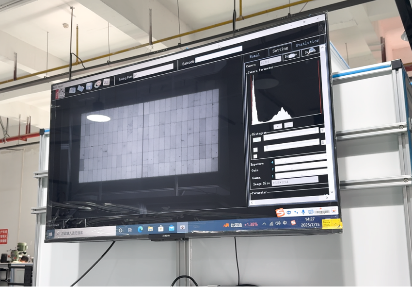 但要实现上拍照,必须攻克重力与振动干扰 。组件在传送带上存在0.1-0.2mm的悬浮波动,相机曝光期间任何位移都会导致图像模糊。为此,设备内置激光测距传感器,实时监测组件平面度,通过负反馈算法动态调整镜头焦距,在15毫秒曝光窗口内保持焦点锁定精度±0.02mm。配合磁悬浮传送带的主动抑振技术,图像锐度MTF值稳定在0.85以上。