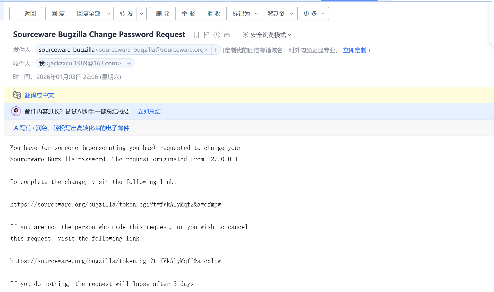 按照邮件提示,点击忘记密码后,按照步骤进行操作: