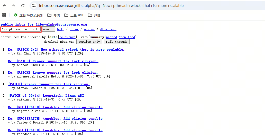 然后就看到了内核的补丁的https://lore.kernel.org/的链接相类似的界面了: