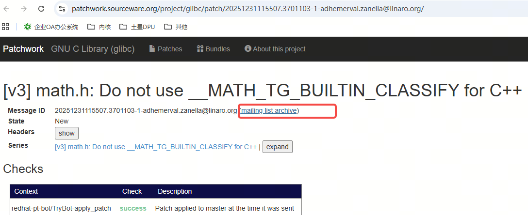 glibc的patchwork的总链接: