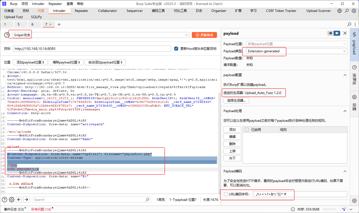 使用Brup suite的upload auto fuzz插件生成payload,绕过文件上传的限制: