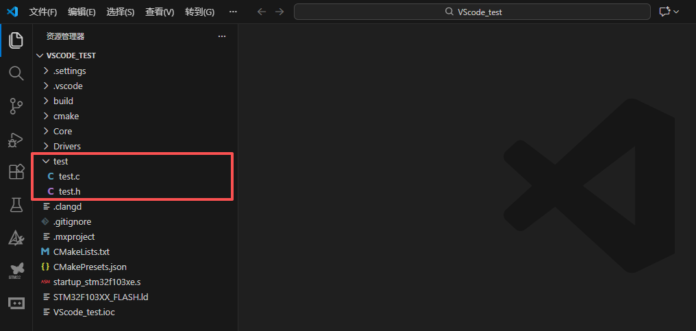 1、在工程根目录创建test文件夹,添加test.c和test.h文件,如下图