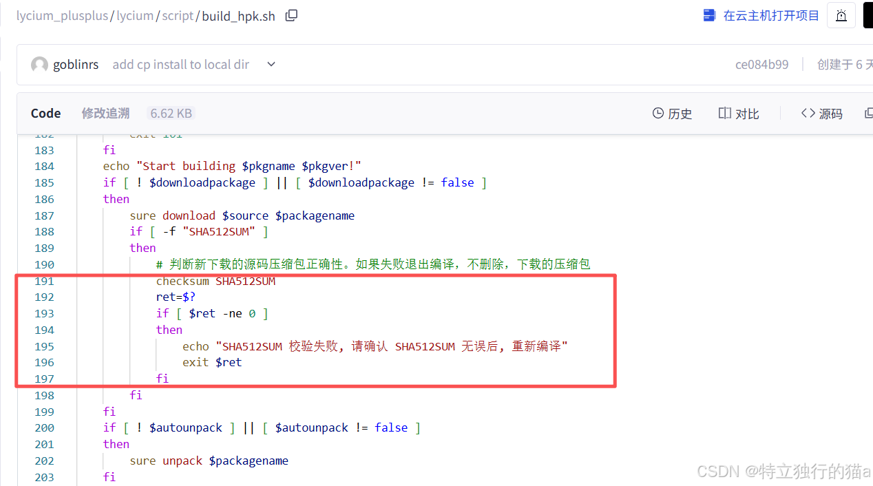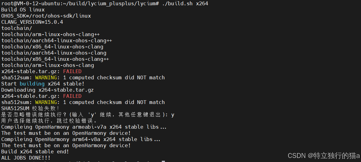 这个错呢,不知道是不是官方脚本验证逻辑的bug,还是说从三方下载的库呢不规范。解决办法也是有的,可以修改下官方脚本lycium/script/build_hpk.sh的191行代码: