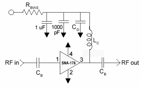 这是一个从DC到10GHz的MMIC放大器,它的简化示意图显示有两级放大。
