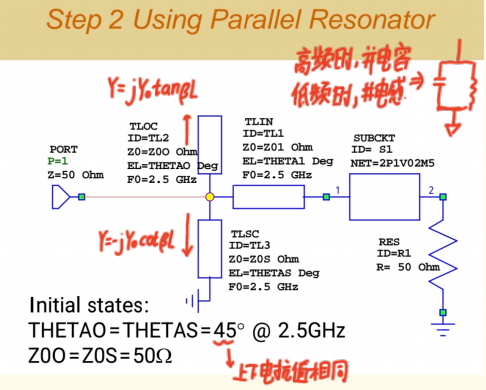 - 并联谐振器的谐振频率(通过微调L、C值)可能从精确的3 GHz稍有偏移。