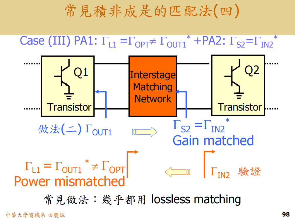 对于两级放大器(如两级LNA或两级PA),中间级(Interstage)的匹配有两种主要思路: