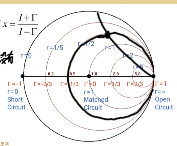 Z0Z_0Z0(50欧姆)归一化后为1+j01 + j01+j0,它所在的等电阻圆就是R=1R=1R=1的圆。