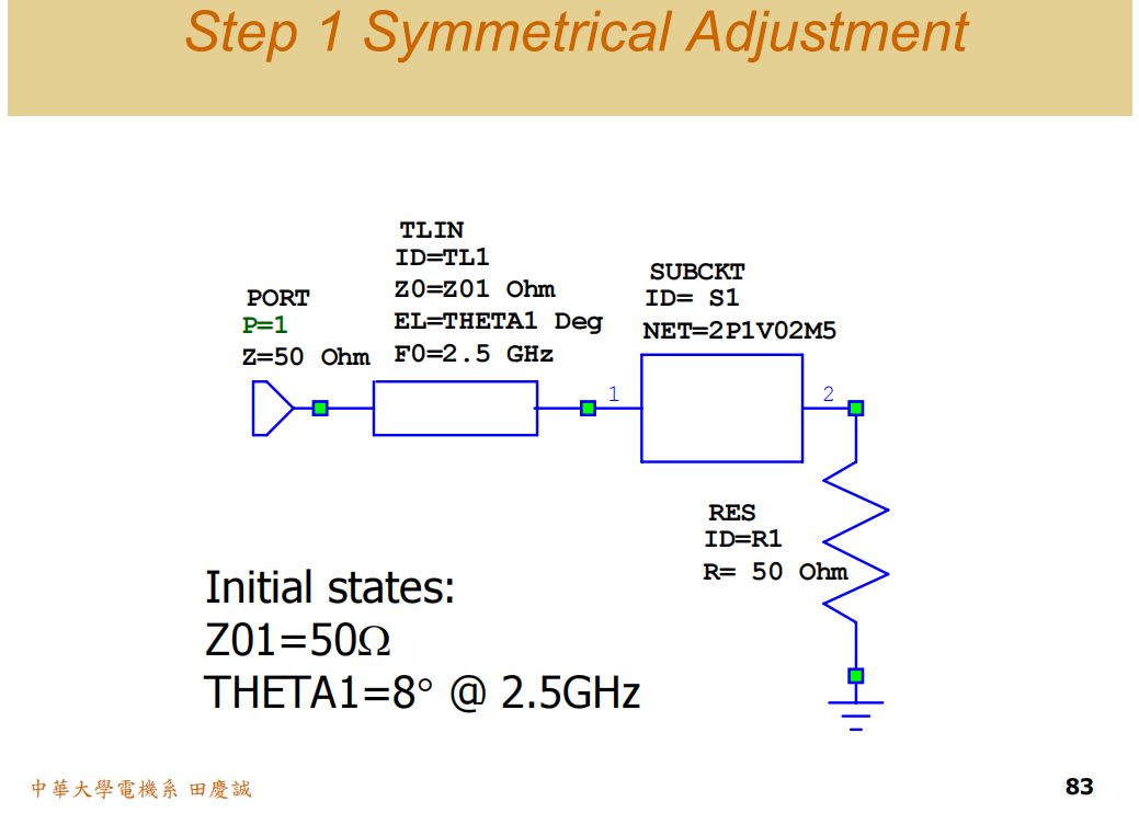 - 开路/短路支线的电长度可能从45°调整到更优值。