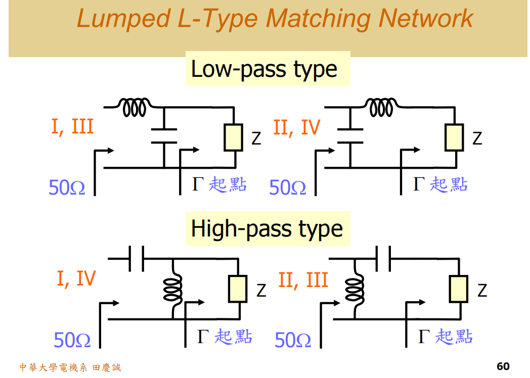 - 所有可能的L型匹配电路拓扑。