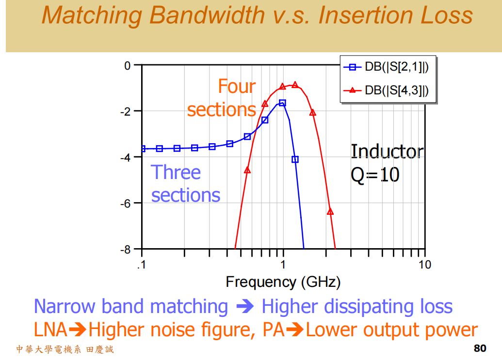 - 在低频段 :匹配网络中的High-Pass元件(-20)起主要作用,斜率是 -20 dB/decade。