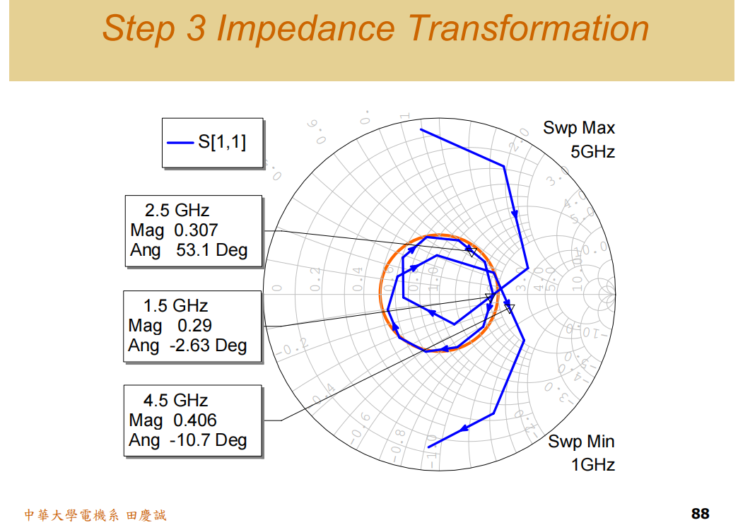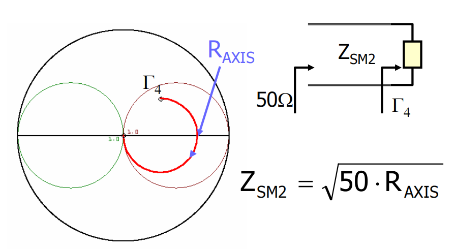 λ/4阻抗变换器将整个轨迹平移到目标阻抗点。