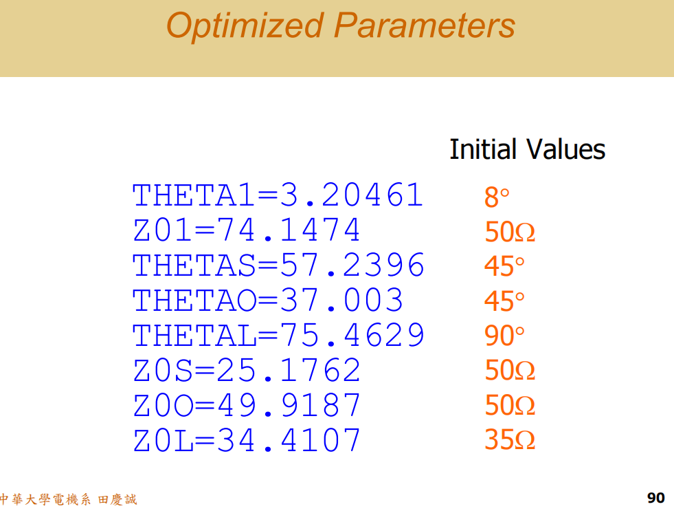 - 最优的宽带响应,往往是频带内反射系数大小近乎"平坦"的响应,而不是一个有很多深谷的崎岖曲线。优化器的任务就是找到元件值的组合,实现这种最均衡、带宽最宽的效果。