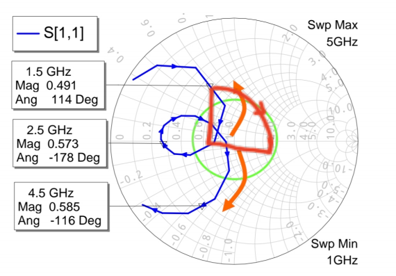 因此,在设计时若能使阻抗点落入感抗区,将更有利于实现高效、经济的带通型匹配。