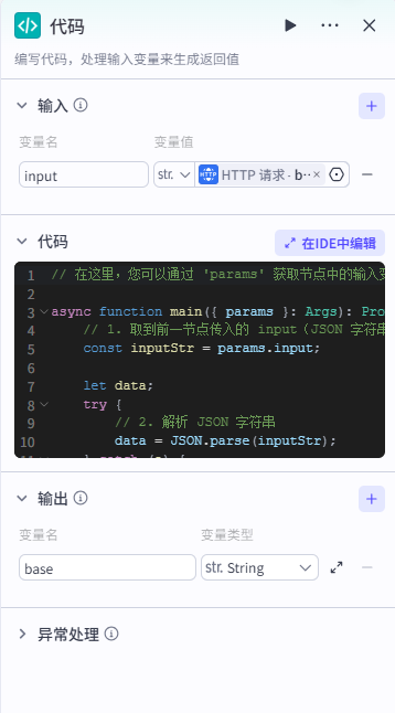 - 代码节点正确解析并输出 Base64 图像数据