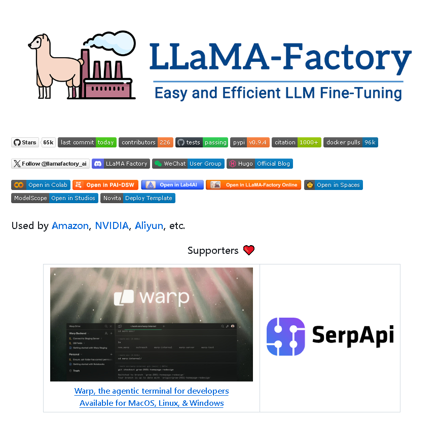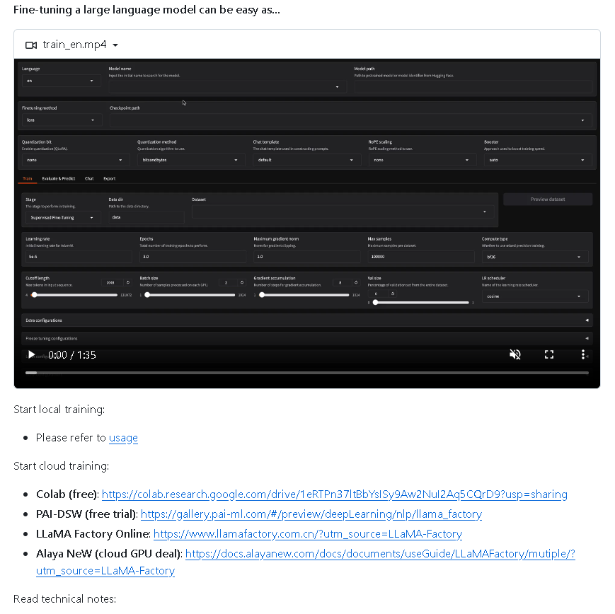 这些新特性进一步提升了 LlamaFactory 在大规模模型训练、分布式效率、硬件适配以及前沿算法支持方面的能力。