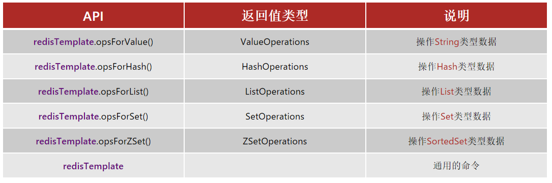 SpringDataRedis中提供了RedisTemplate工具类,其中封装了各种对Redis的操作。