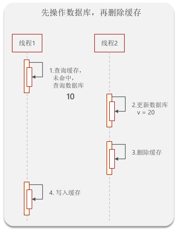 应该操作完数据库后,再删除缓存(修改完数据库后,删除缓存的操作执行速度是很快的,产生并发问题的可能性低)