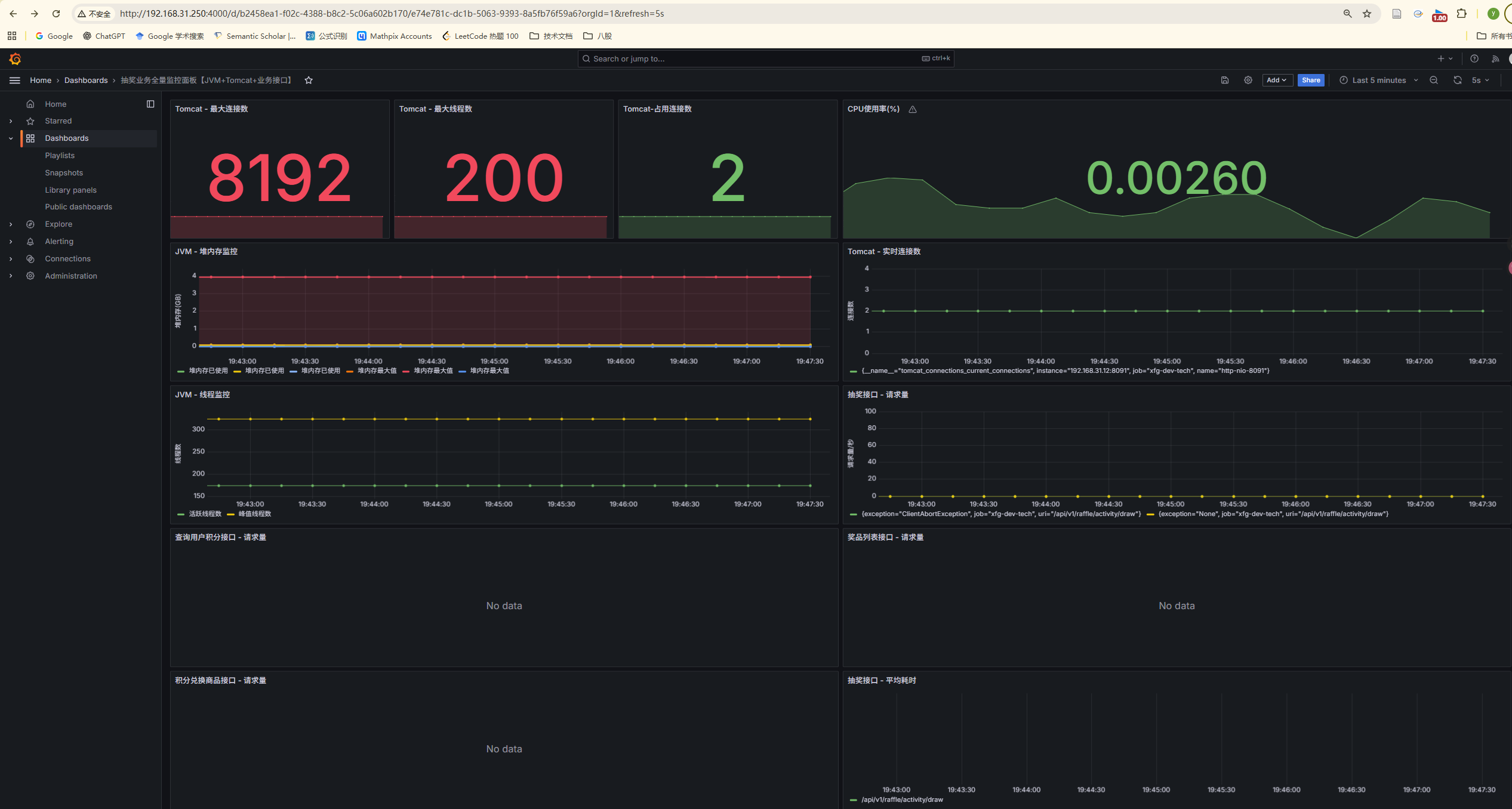 至此,基础监控环境已搭建完成。下一步将基于此监控体系,使用 JMeter 对营销系统抽奖接口进行压测,通过实时监控指标变化来分析系统性能瓶颈,为优化提供数据支撑。