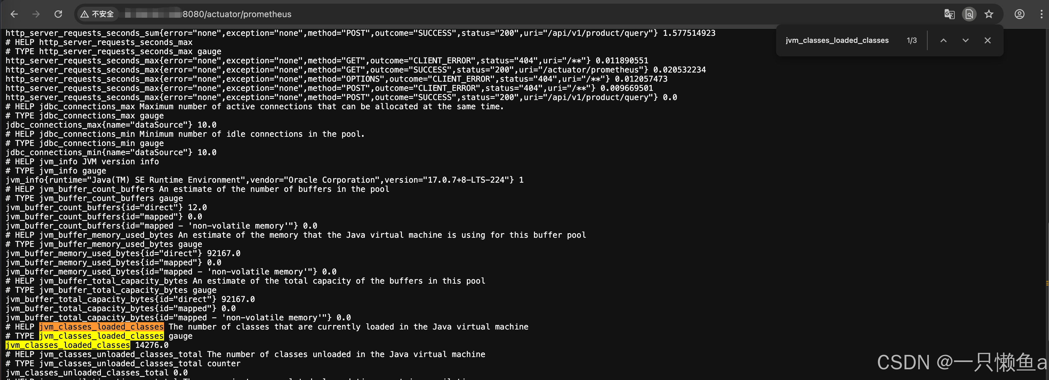 进一步查看某个指标 http://localhost:8080/actuator/metrics/jvm.info