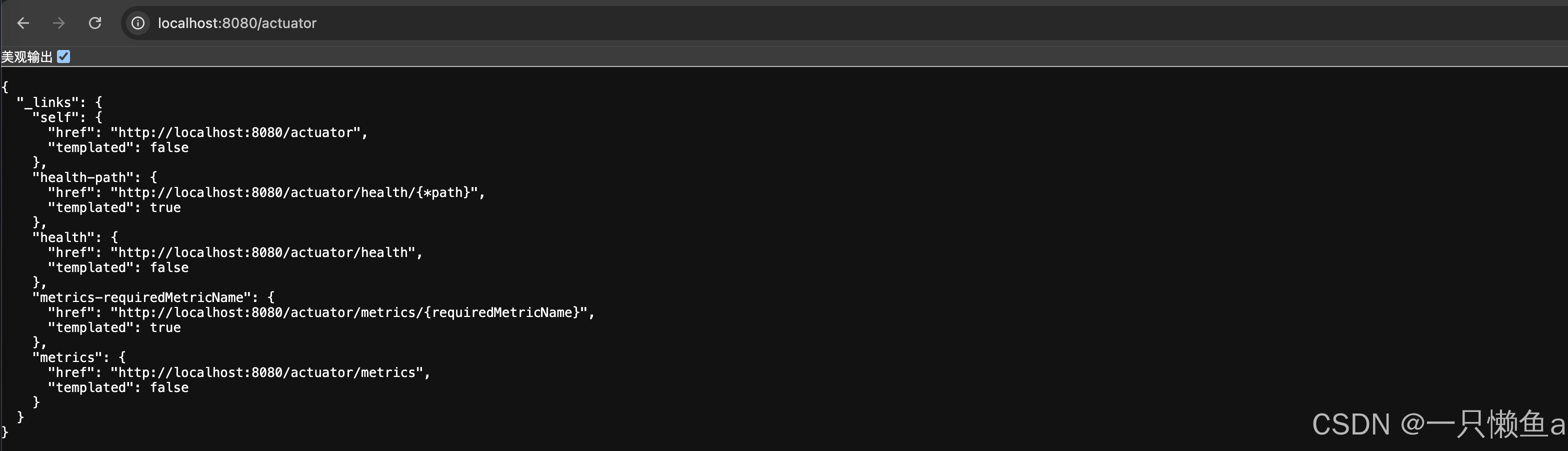 6.1.1.3 访问链接(http://localhost:8080/actuator)